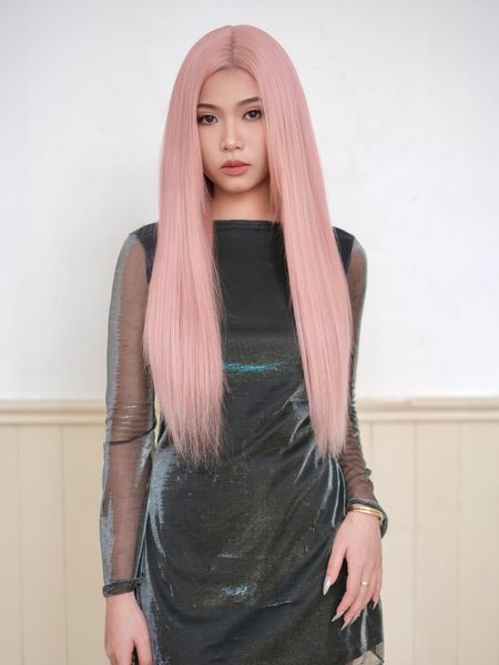 Bộ tóc giả nguyên đầu siêu da lưới Lace mái bay- Dài ngang lưng - Thẳng tự nhiên - Màu Hồng Khói- SL1012