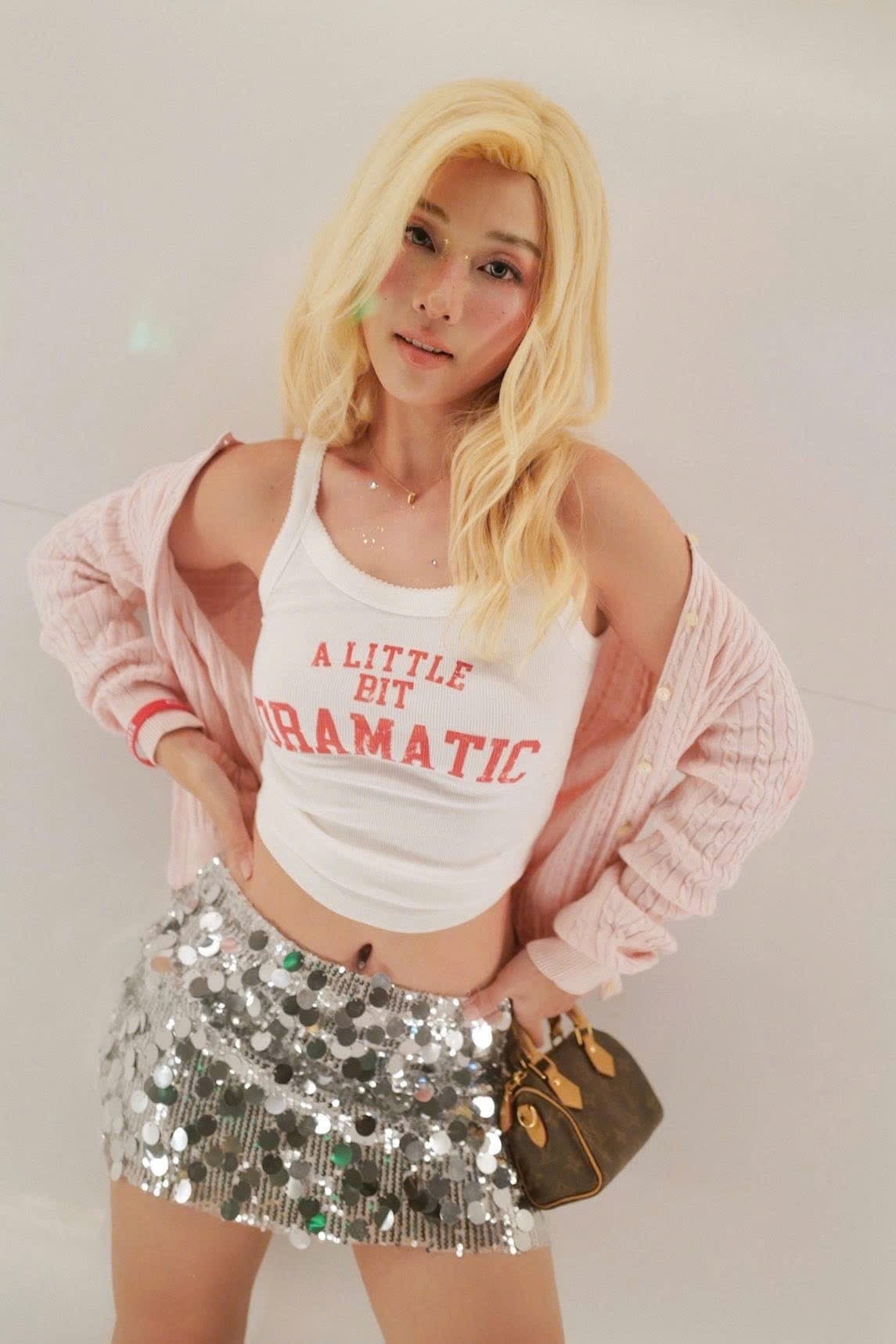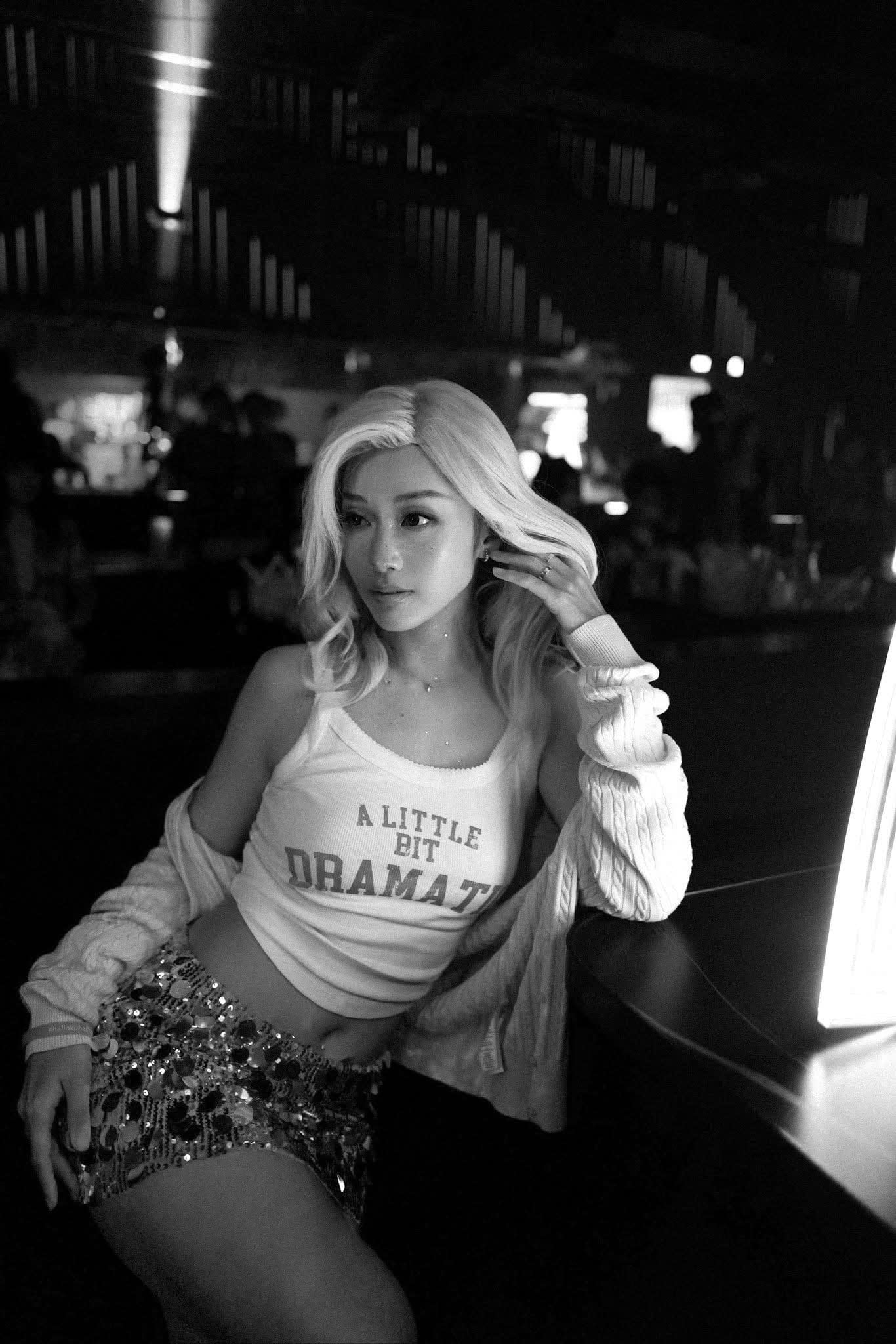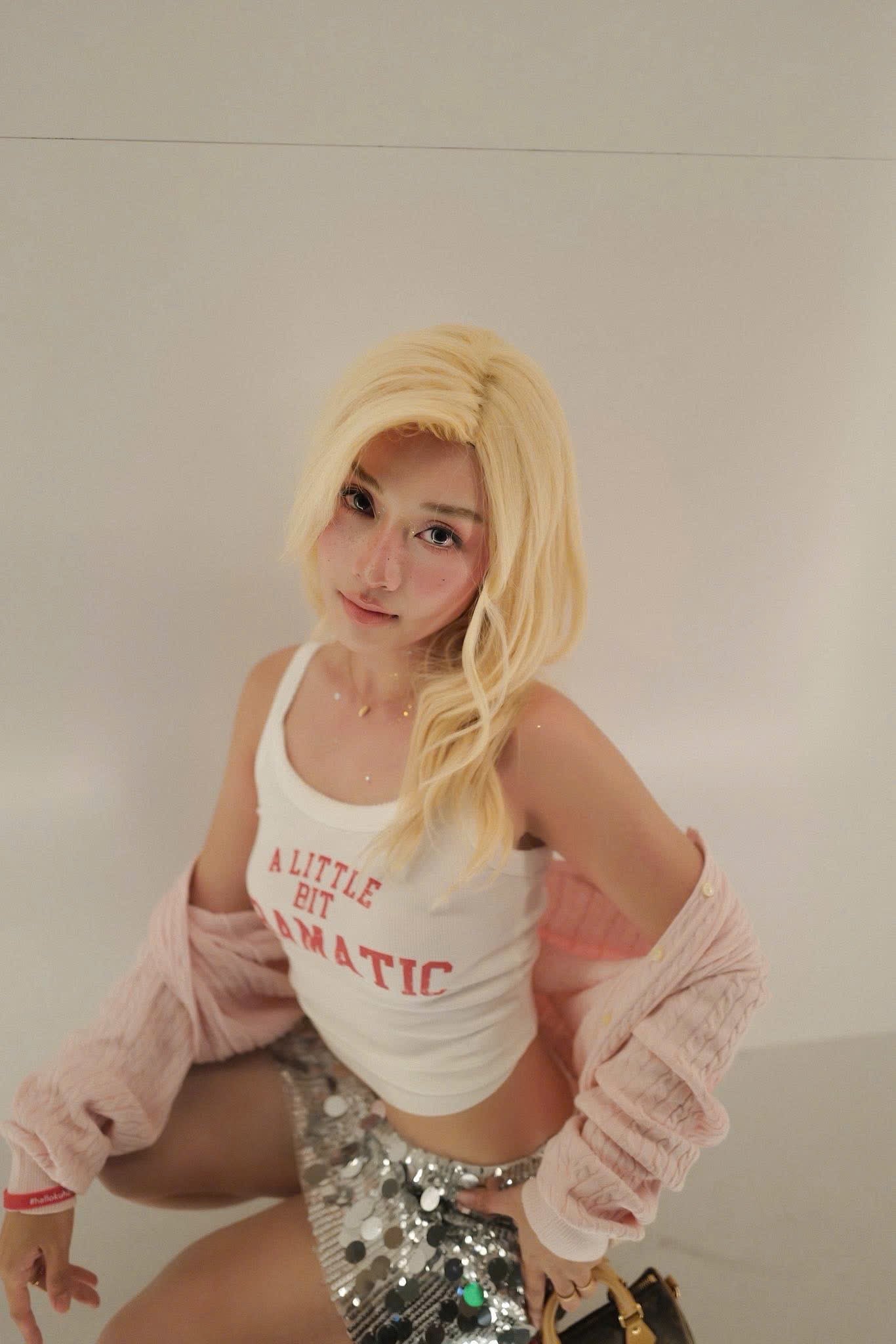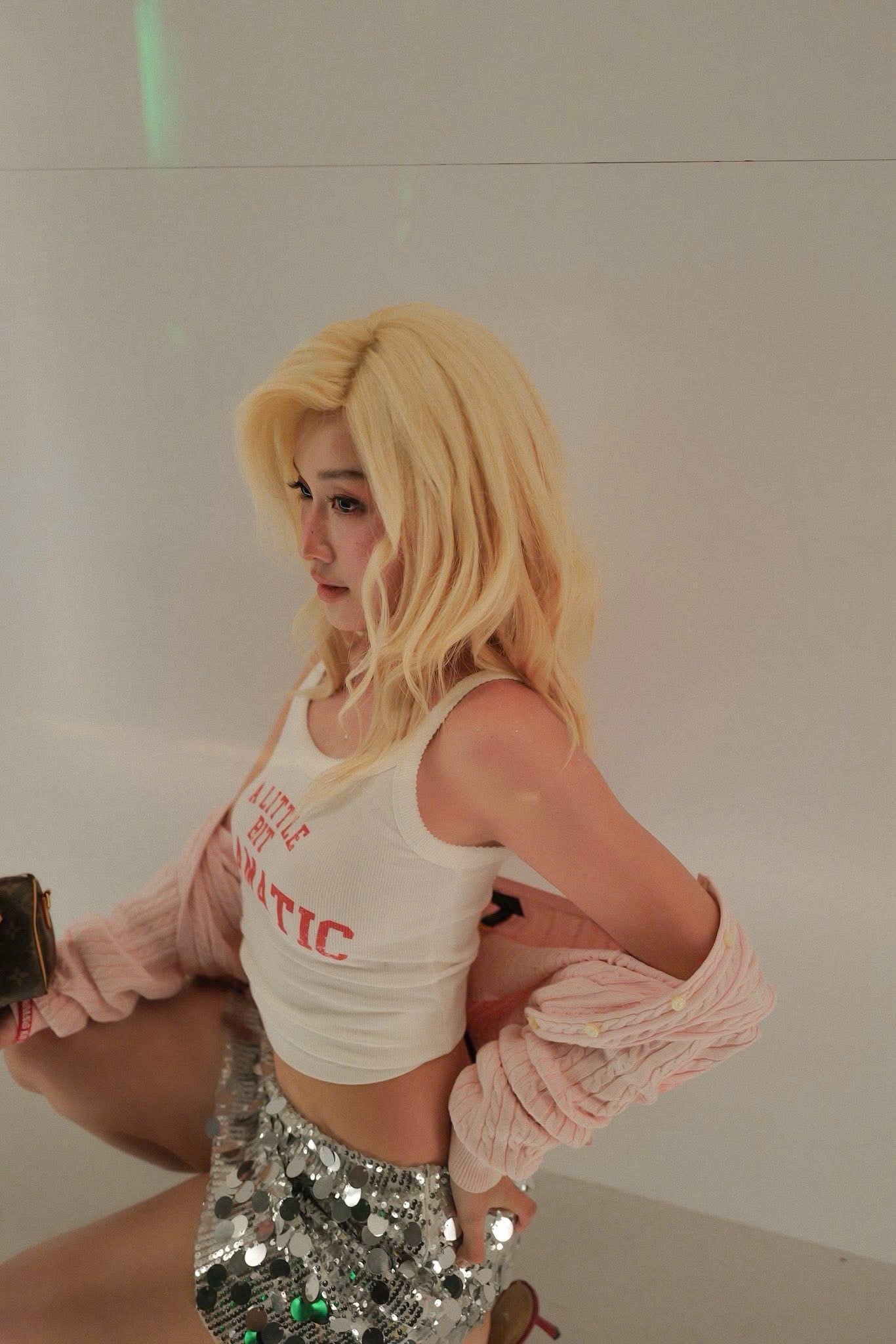 Tóc thật dài DA MONO màu Champagne Blonde Khả Ngân