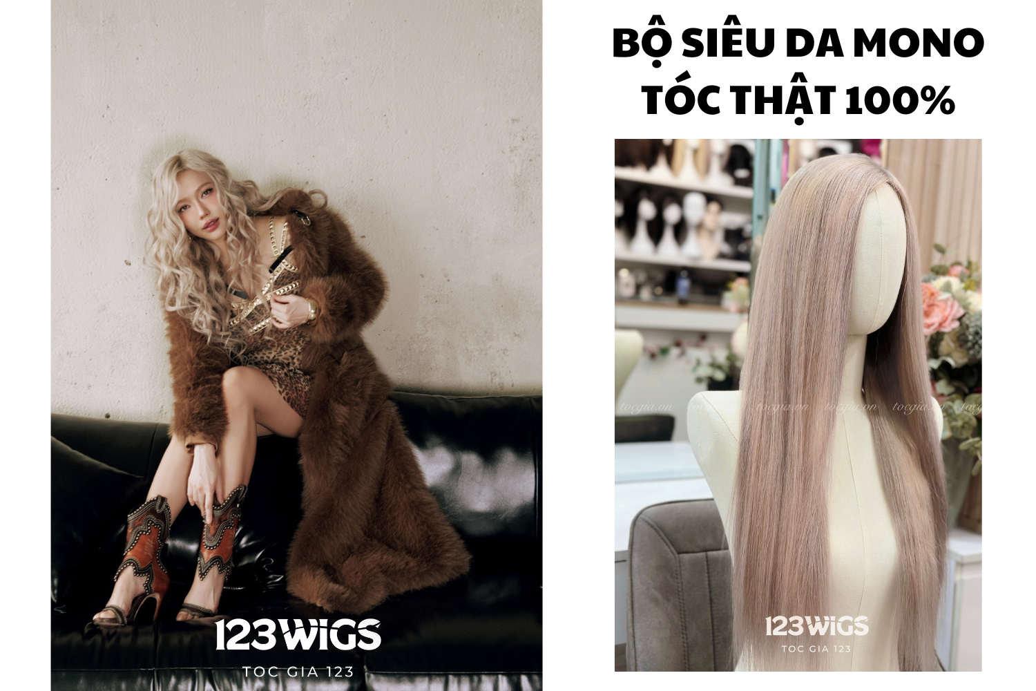 Tóc thật SIÊU DA MONO màu vàng khói Diệu Nhi