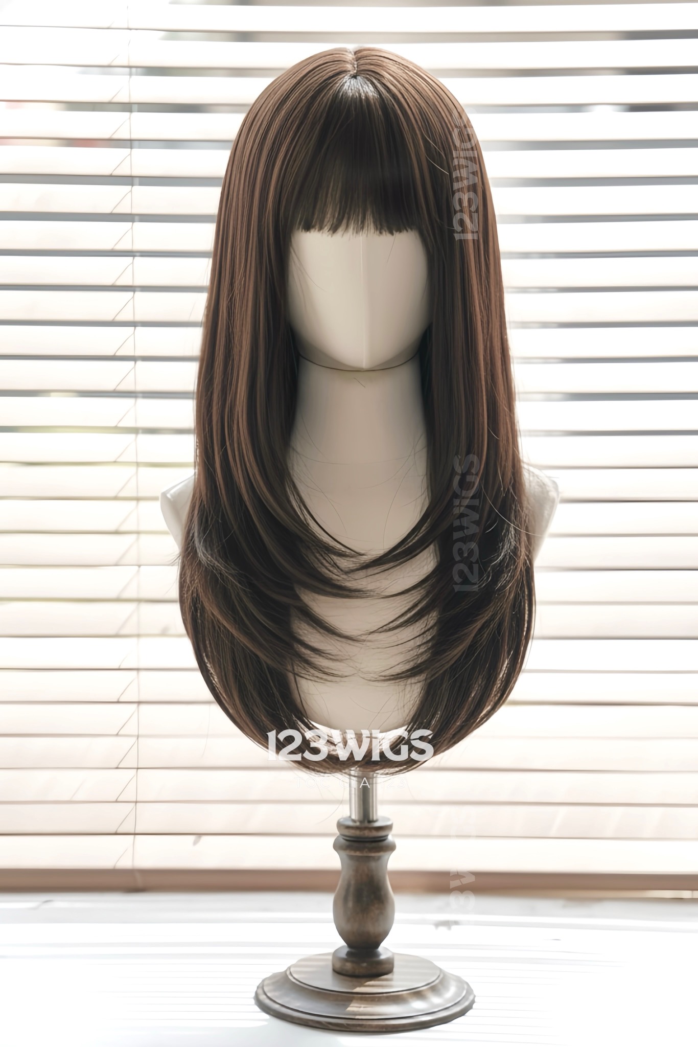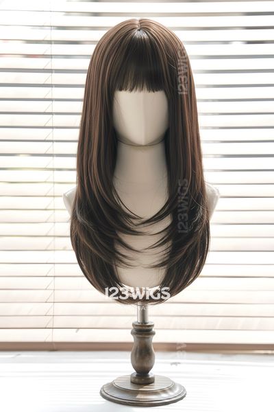 Bộ tóc giả nguyên đầu tơ cao cấp - Layer mái thưa - Màu nâu đen - 51184