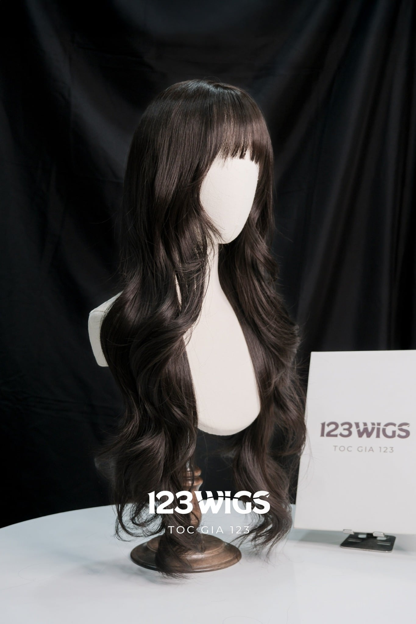 Bộ tóc giả nguyên đầu tơ cao cấp Mái thưa - Dài ngang lưng - Xoăn tầng - Màu Nâu Đen S1065