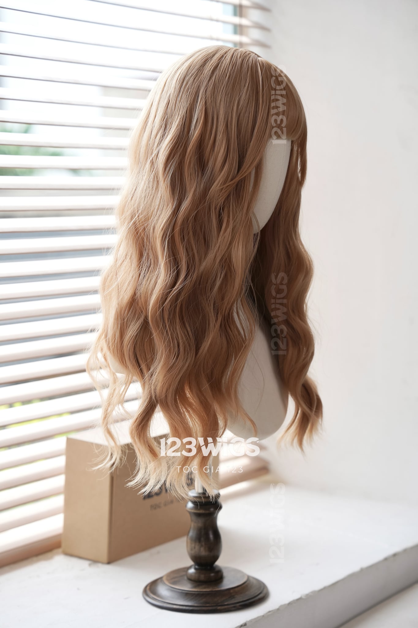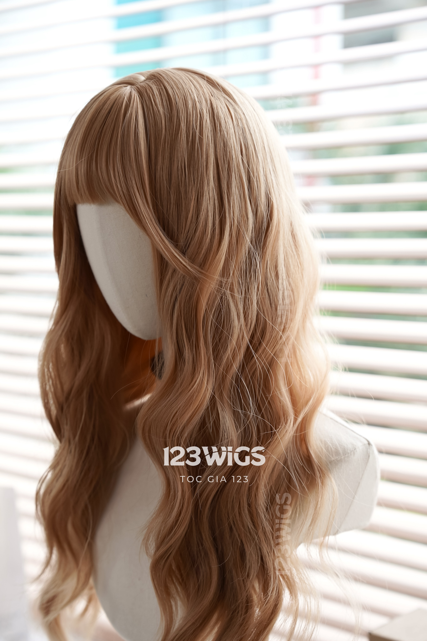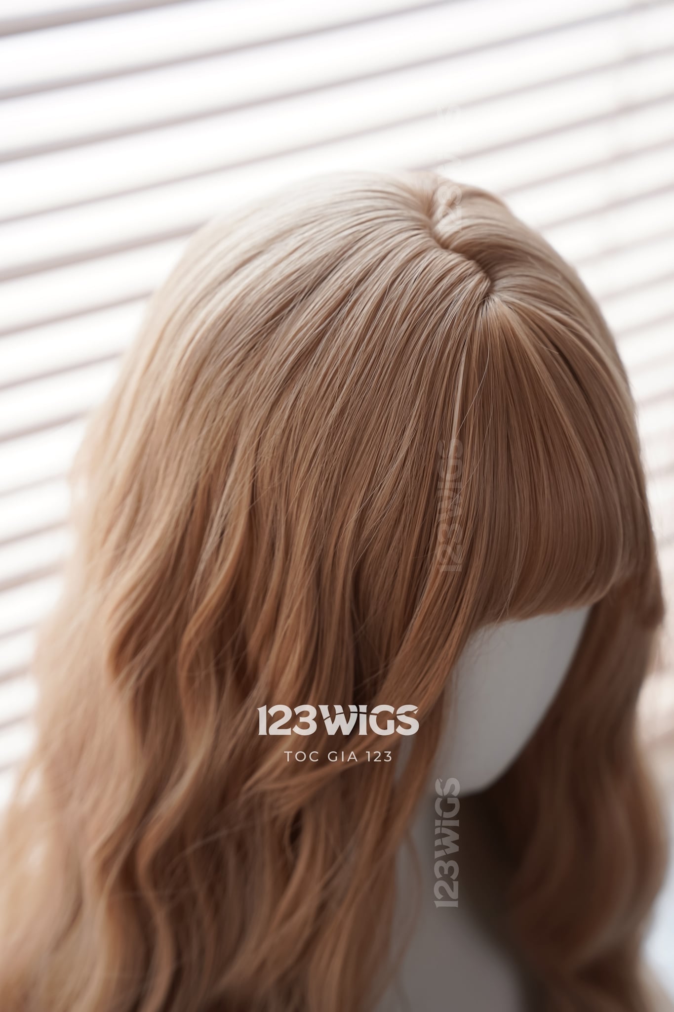 Bộ tóc giả nguyên đầu tơ cao cấp - Xoăn sóng mái thưa - Màu vàng caramel - 41191