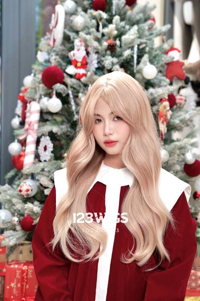 Bộ tóc giả nguyên đầu - Xoăn gợn sóng - Mái xéo - Màu vàng sữa 51233