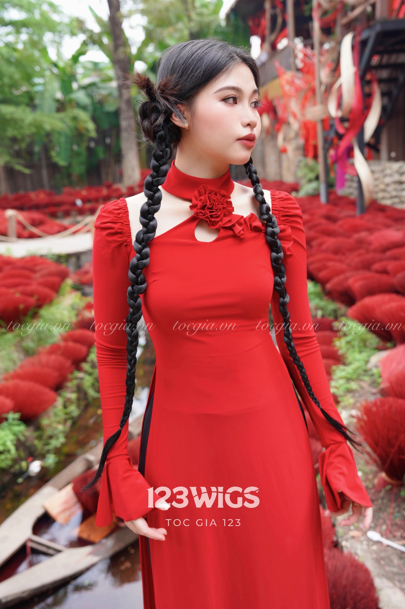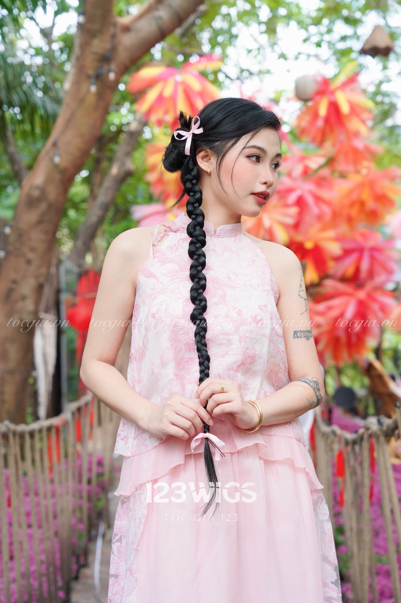 Mang đến vẻ đẹp dịu dàng, thanh thoát cho mùa Tết, mẫu tóc giả bím được thiết kế theo phong cách truyền thống, dễ dàng kết hợp cùng áo dài, trang phục du xuân hay chụp ảnh kỷ niệm đầu năm.