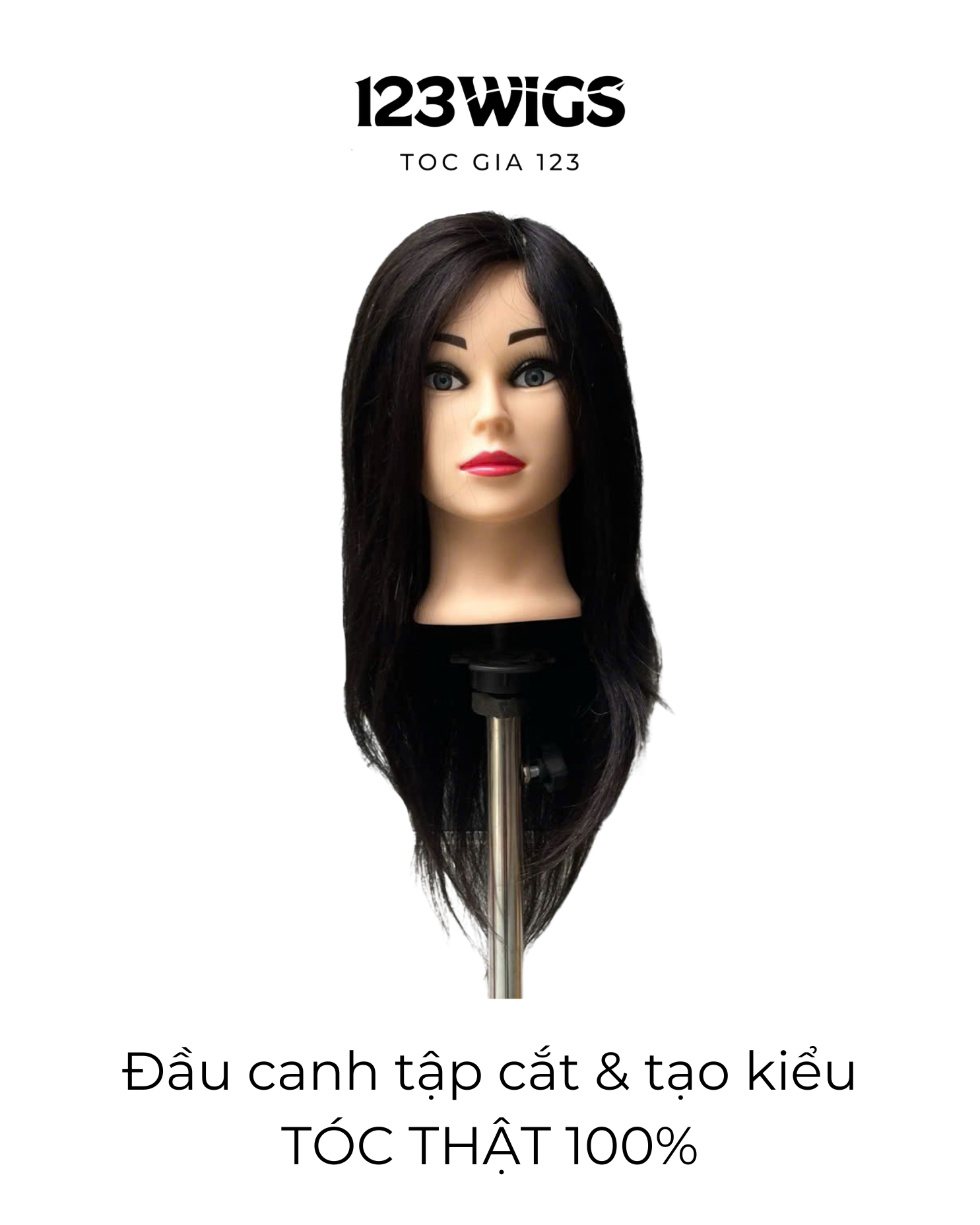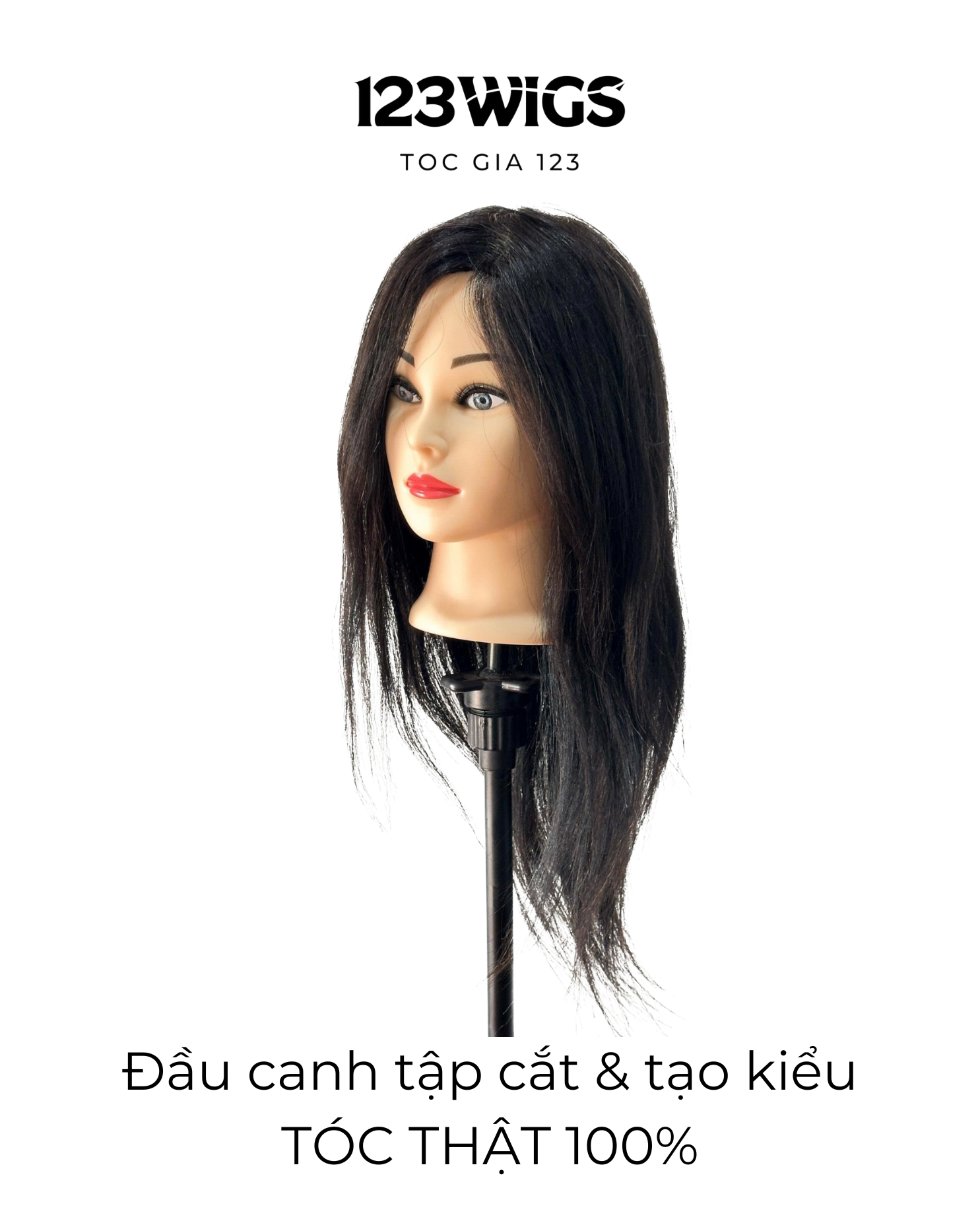Gắn vào chân đế đầu canh để tập cắt & tạo kiểu Phù hợp luyện:Cắt layer, bob, sole, tạo form chuẩn Sấy tạo kiểu cơ bản Chia ngôi, xử lý phom đầu Có thể dùng nhiệt mức vừa (không khuyến nghị nhiệt quá cao như tóc thật 100%) Không nên tẩy – nhuộm mạnh
