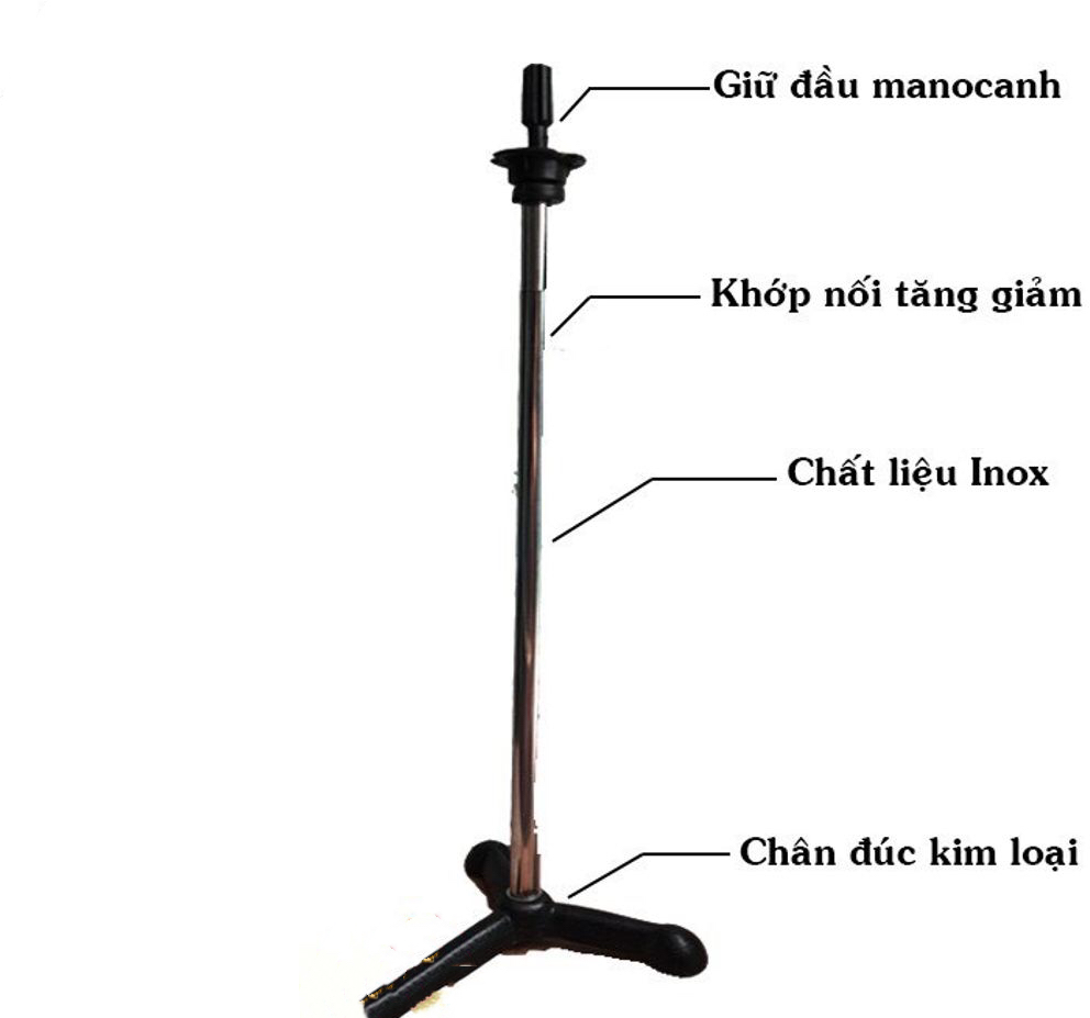 Chất liệu: Kim loại sáng bóng, chống gỉ Màu: Bạc inox Chiều cao: 95 – 164,5 cm (điều chỉnh linh hoạt) Trọng lượng: ~2 kg Thiết kế: Chân kim loại đúc chắc chắn, đứng vững Công dụng: Gắn đầu manocanh cắt – tạo kiểu – đào tạo salon Ưu điểm: Bền, gọn, dễ di chuyển, dùng lâu dài