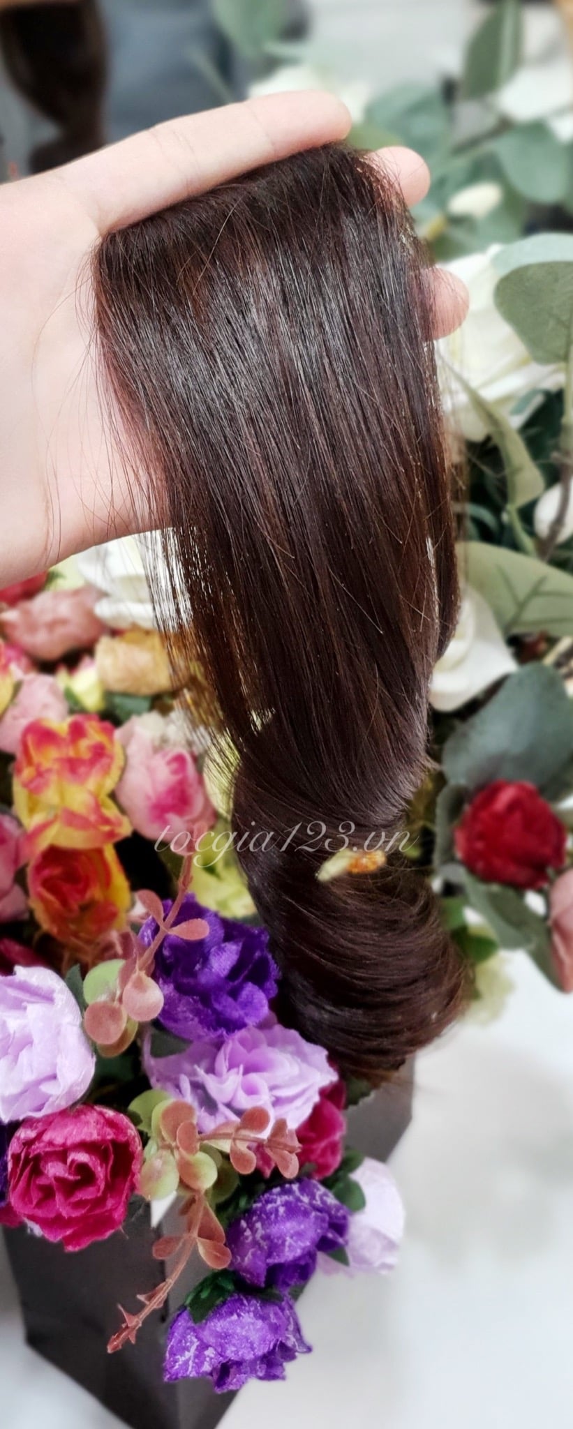 💥 Hình chụp sản phẩm thật của Tóc Giả 123. 👌 Chất liệu bằng sợi tơ cao cấp mềm mượt, có thể dùng nhiệt tạo kiểu và giống tóc thật đến 99%. Tất cả sản phẩm tơ nhân tạo đều được bảo hành + chải tóc miễn phí 3 tháng. 💥 Cửa hàng luôn có sẵn rất nhiều mẫu tóc để khách đến thử trực tiếp và cắt tỉa, tạo kiểu theo yêu cầu. 👍 Vui lòng nhắn tin cho shop để được báo giá và tư vấn cụ thể về sản phẩm hoặc đặt kiểu theo yêu cầu riêng. 👉 Nhận giao hàng tận nơi trên toàn quốc.