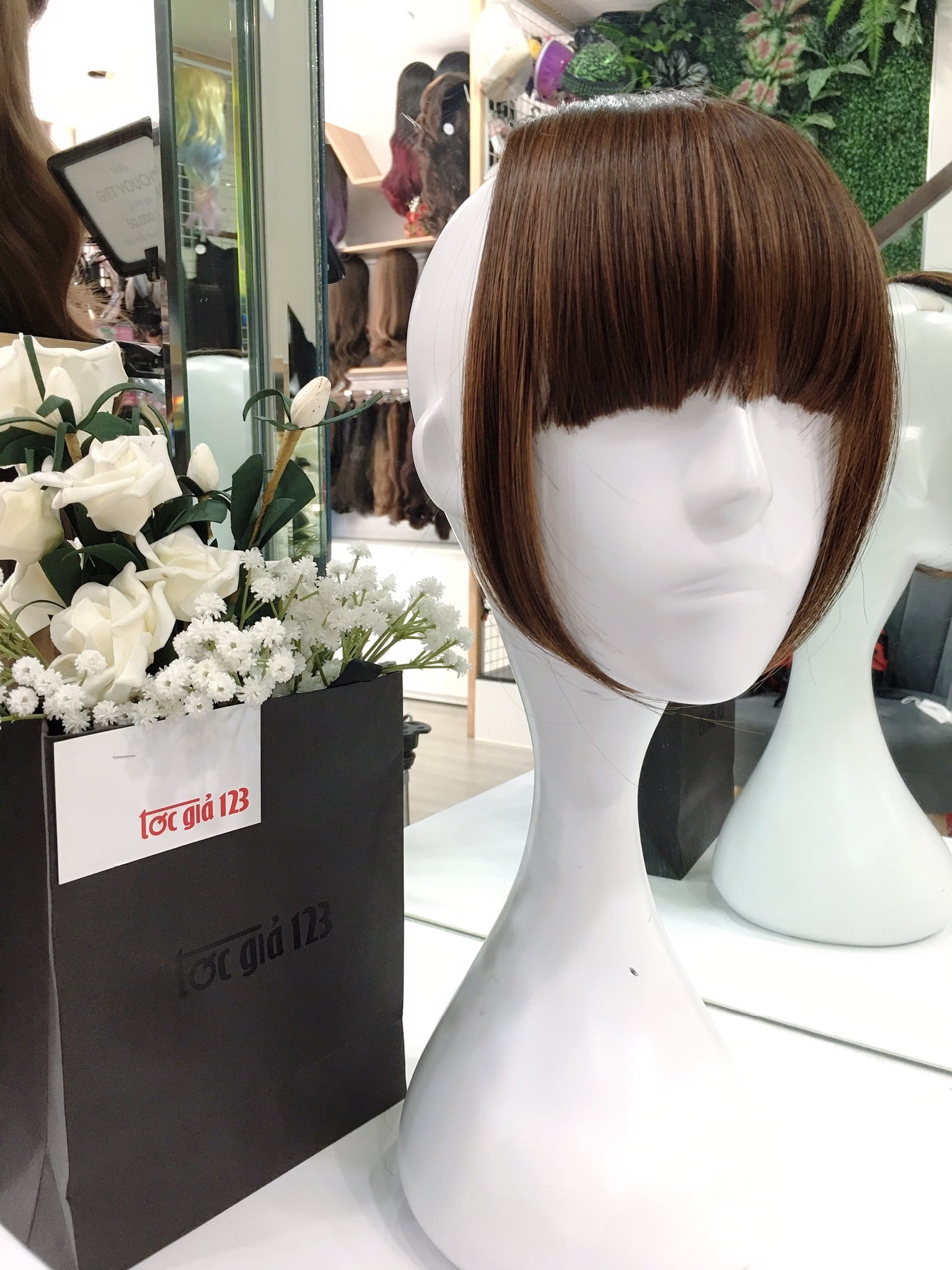 💥 Hình chụp sản phẩm thật của Tóc Giả 123. 👌 Chất liệu bằng sợi tơ cao cấp mềm mượt, có thể dùng nhiệt tạo kiểu và giống tóc thật đến 99%. Tất cả sản phẩm tơ nhân tạo đều được bảo hành + chải tóc miễn phí 3 tháng. 💥 Cửa hàng luôn có sẵn rất nhiều mẫu tóc để khách đến thử trực tiếp và cắt tỉa, tạo kiểu theo yêu cầu. 👍 Vui lòng nhắn tin cho shop để được báo giá và tư vấn cụ thể về sản phẩm hoặc đặt kiểu theo yêu cầu riêng. 👉 Nhận giao hàng tận nơi trên toàn quốc.