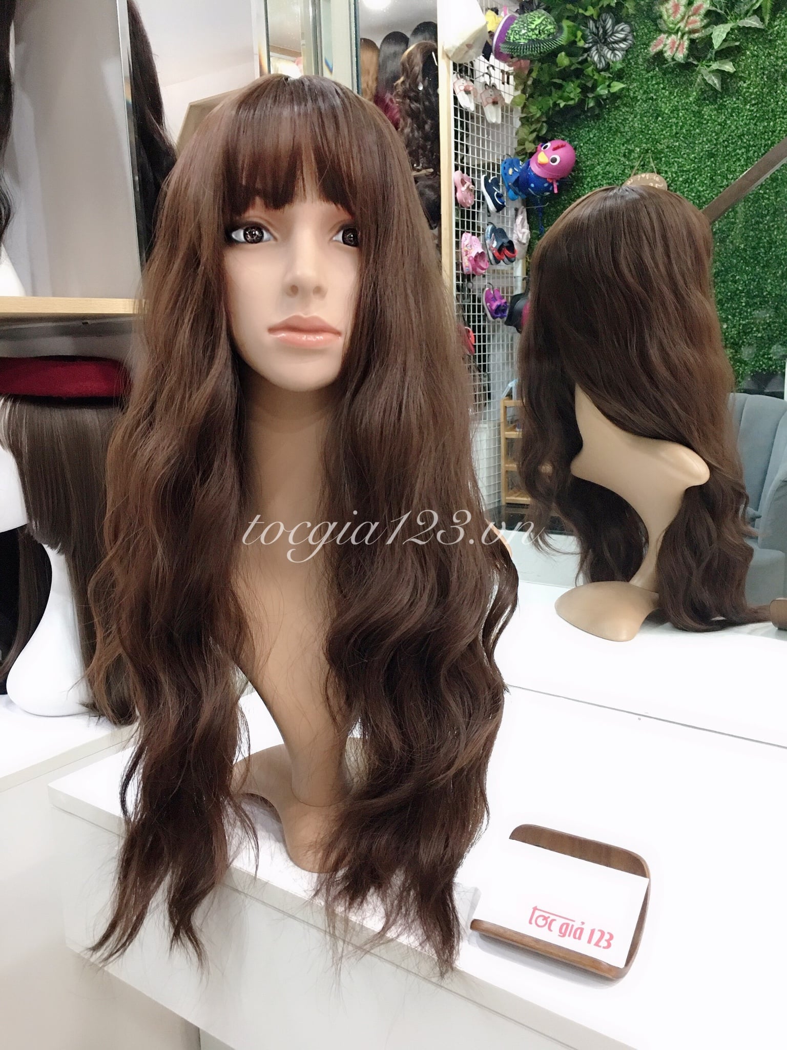 💥 Hình chụp sản phẩm thật của Tóc Giả 123. 👌 Chất liệu bằng sợi tơ cao cấp mềm mượt, có thể dùng nhiệt tạo kiểu và giống tóc thật đến 99%. Tất cả sản phẩm tơ nhân tạo đều được bảo hành + chải tóc miễn phí 3 tháng. 💥 Cửa hàng luôn có sẵn rất nhiều mẫu tóc để khách đến thử trực tiếp và cắt tỉa, tạo kiểu theo yêu cầu. 👍 Vui lòng nhắn tin cho shop để được báo giá và tư vấn cụ thể về sản phẩm hoặc đặt kiểu theo yêu cầu riêng. 👉 Nhận giao hàng tận nơi trên toàn quốc.
