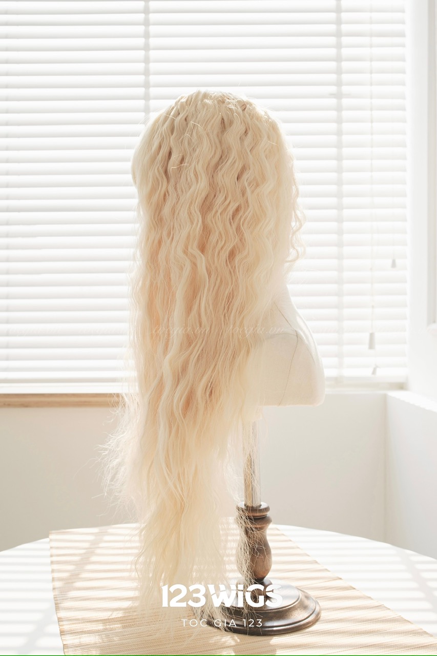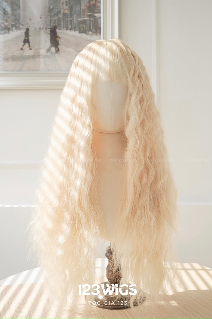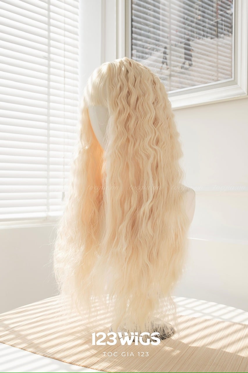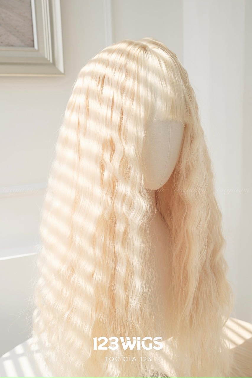 Tóc dài mái thưa xoăn xù mì màu vàng kim S1024