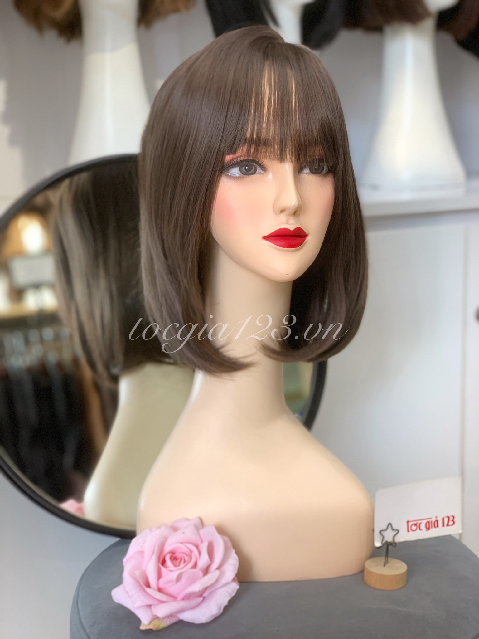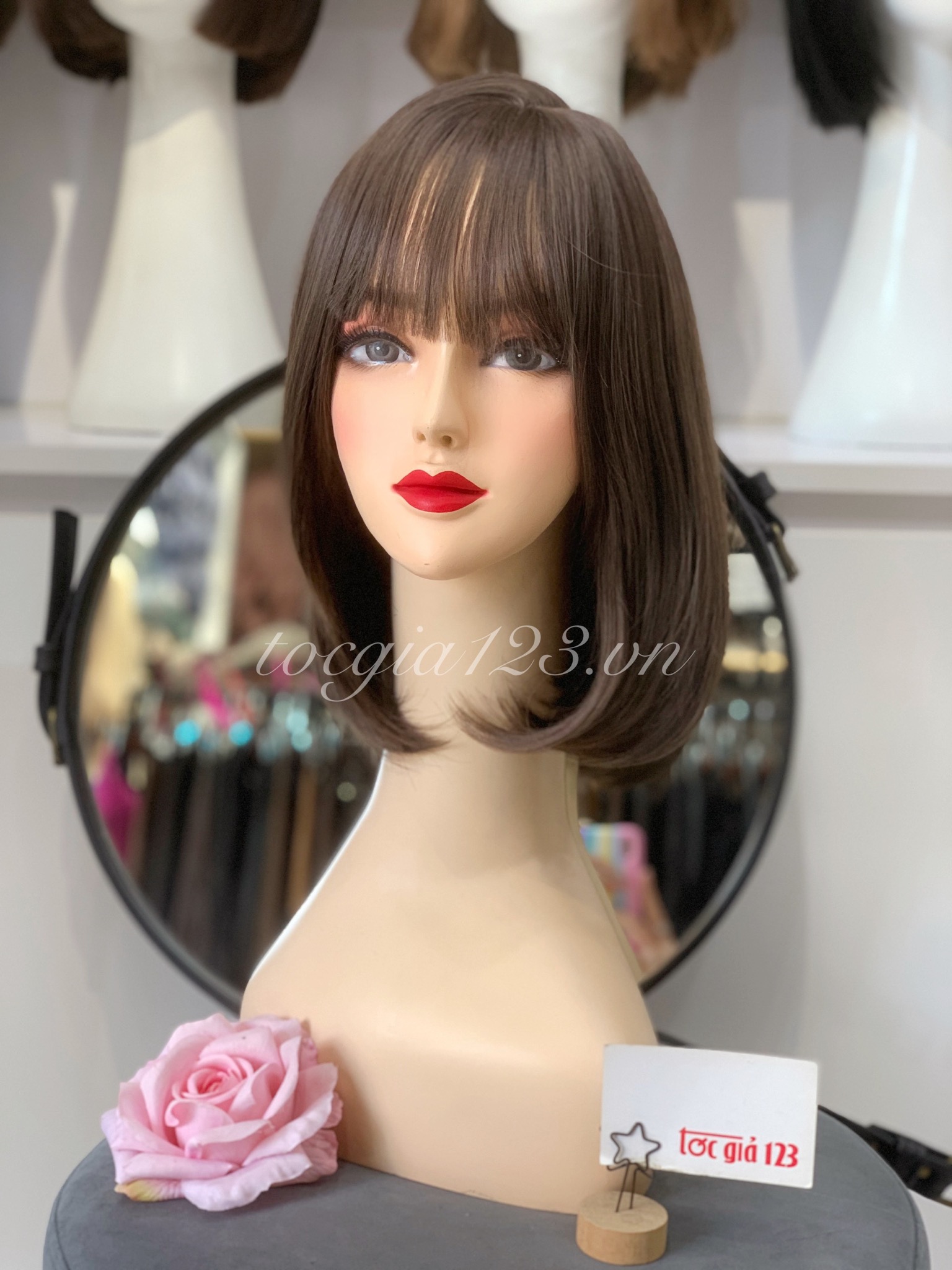 💥 Hình chụp sản phẩm thật của Tóc Giả 123. 👌 Chất liệu bằng sợi tơ cao cấp mềm mượt, có thể dùng nhiệt tạo kiểu và giống tóc thật đến 99%. Tất cả sản phẩm tơ nhân tạo đều được bảo hành + chải tóc miễn phí 3 tháng. 💥 Cửa hàng luôn có sẵn rất nhiều mẫu tóc để khách đến thử trực tiếp và cắt tỉa, tạo kiểu theo yêu cầu. 👍 Vui lòng nhắn tin cho shop để được báo giá và tư vấn cụ thể về sản phẩm hoặc đặt kiểu theo yêu cầu riêng. 👉 Nhận giao hàng tận nơi trên toàn quốc.