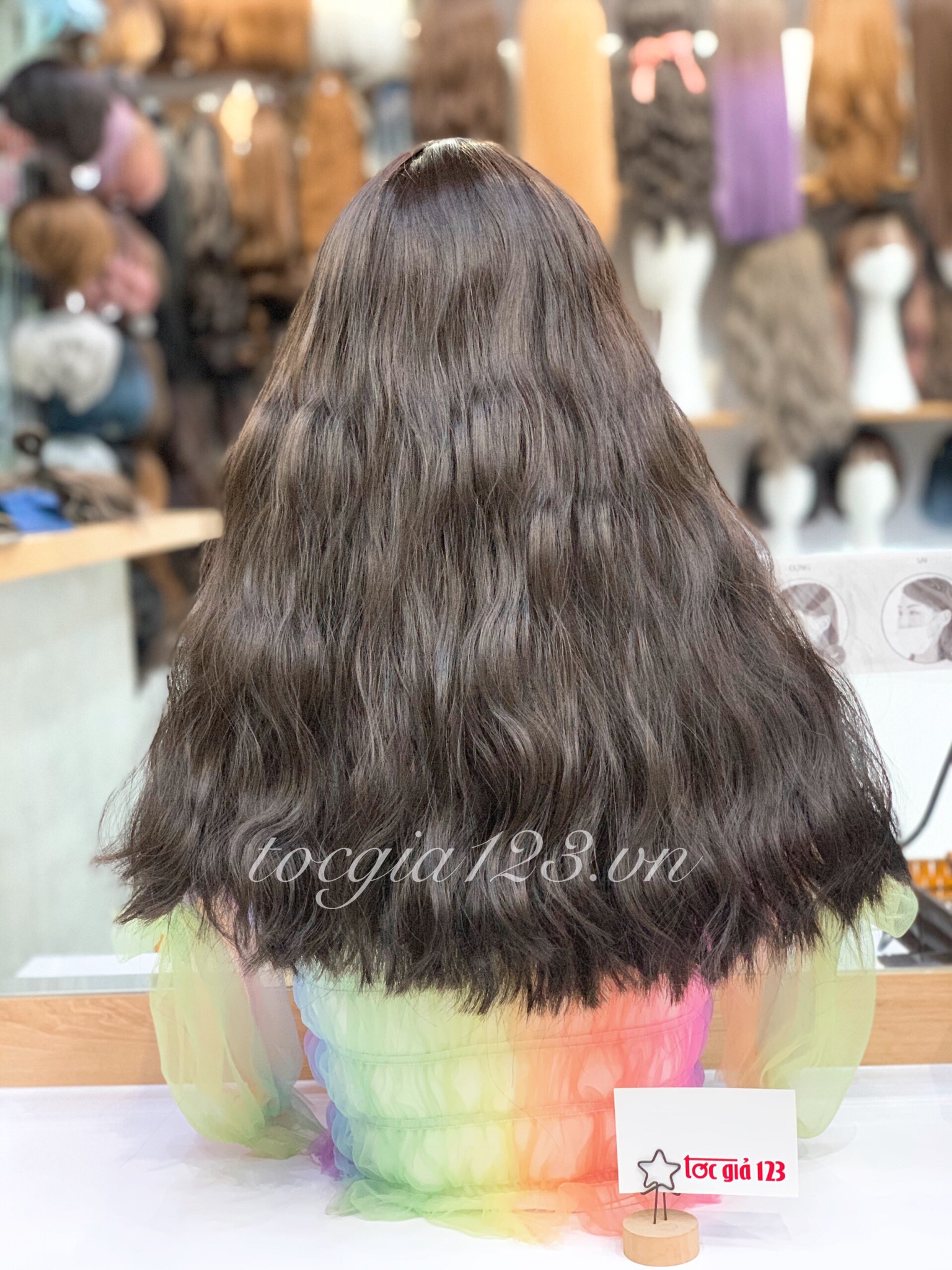 💥 Hình chụp sản phẩm thật của Tóc Giả 123. 👌 Chất liệu bằng sợi tơ cao cấp mềm mượt, có thể dùng nhiệt tạo kiểu và giống tóc thật đến 99%. Tất cả sản phẩm tơ nhân tạo đều được bảo hành + chải tóc miễn phí 3 tháng. 💥 Cửa hàng luôn có sẵn rất nhiều mẫu tóc để khách đến thử trực tiếp và cắt tỉa, tạo kiểu theo yêu cầu. 👍 Vui lòng nhắn tin cho shop để được báo giá và tư vấn cụ thể về sản phẩm hoặc đặt kiểu theo yêu cầu riêng. 👉 Nhận giao hàng tận nơi trên toàn quốc.